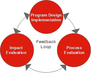 Our experience has shown that there is a cyclical feedback loop linking program design and implementation, impact evaluation, and process evaluation. Initial program design is informed by prior baseline and market potential studies. Impact evaluation is the key to identifying whether a program is meeting its goals. Impact evaluation confirms program progress and may raise additional process related questions and, again, prompt program design changes. Process evaluation tells the story underlying the program impacts and points the way toward increasing program impacts. Process evaluation provides insight into program design and provides the context for the impact evaluation. The three elements work together to create a better, more effective program. The figure below shows an example of this feedback loop.